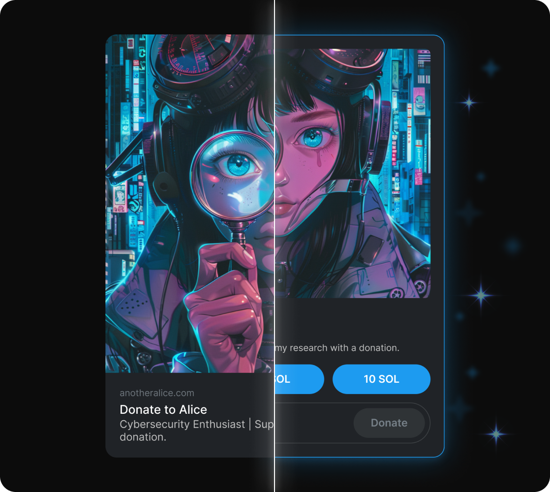 We’ve teamed up with Solana’s leading wallets to deliver Blinks directly to Crypto Twitter, batteries included. Or use our dedicated Blinks extension with any wallet.